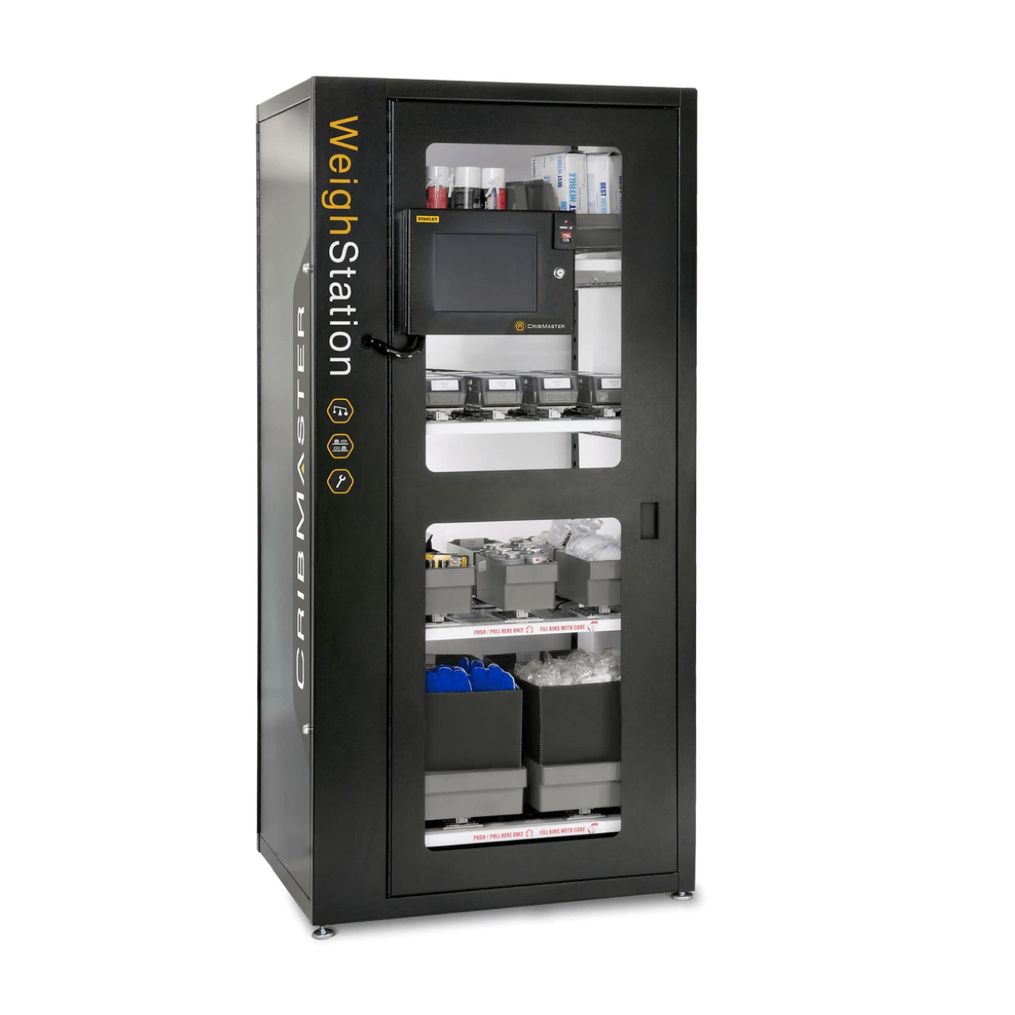 The WeighStation monitors and tracks dispensing through precise weight-sensing technology that monitors how much inventory is available. Powerful CribMaster software uses this data from the WeighStation to streamline material purchasing, and replenishment when inventory reaches below a certain level.